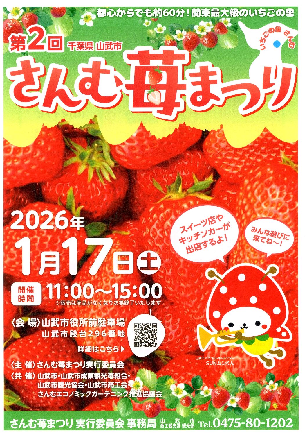 さんむ苺まつり実行委員会では、昨年に引き続き”第2回さんむ苺まつり”を開催いたします。 ◆日時:令和8年1月17日(土) 11:00~15:00 ◆…